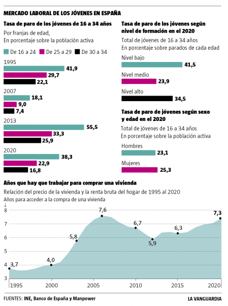 Podemos concluir que, por desgracia, el contexto es adverso y dificulta a nuestros jóvenes, a nuestros hijos, el acceso, tanto al mercado laboral en un puesto ajustado a su nivel de formación académica, como a la vivienda en régimen de propiedad.